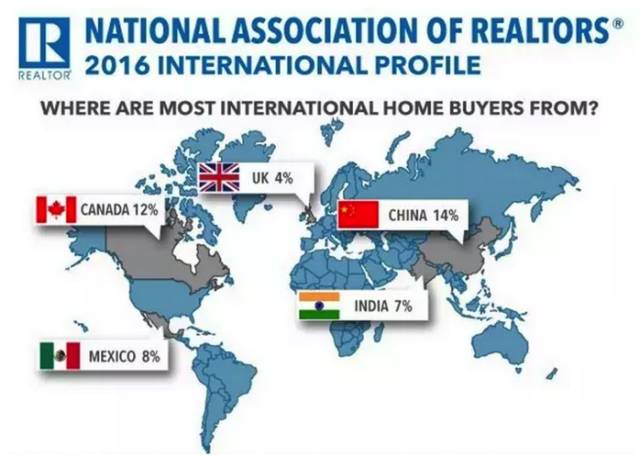 据调查统计,来自中国的国际房产投资者占全球比例的14%
