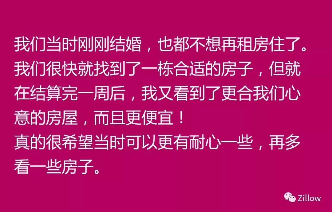 买家们对于房产的种种遗憾已经不是什么新鲜事。Zillow 集团旗下品牌 Trulia 在 2017 年展开的调查显示,44% 的美国人在完成购房交易后会对买入的房子或选房的过程感到后悔。而错误的时机可以让完美计划功亏一篑。当市场中一半以上的买家都买不起房的时候,买房成本会非常高。如果你想避免付出昂贵代价或是避开错误时机,请一定仔细阅读这篇文章,从买家们的遗憾中学习经验。