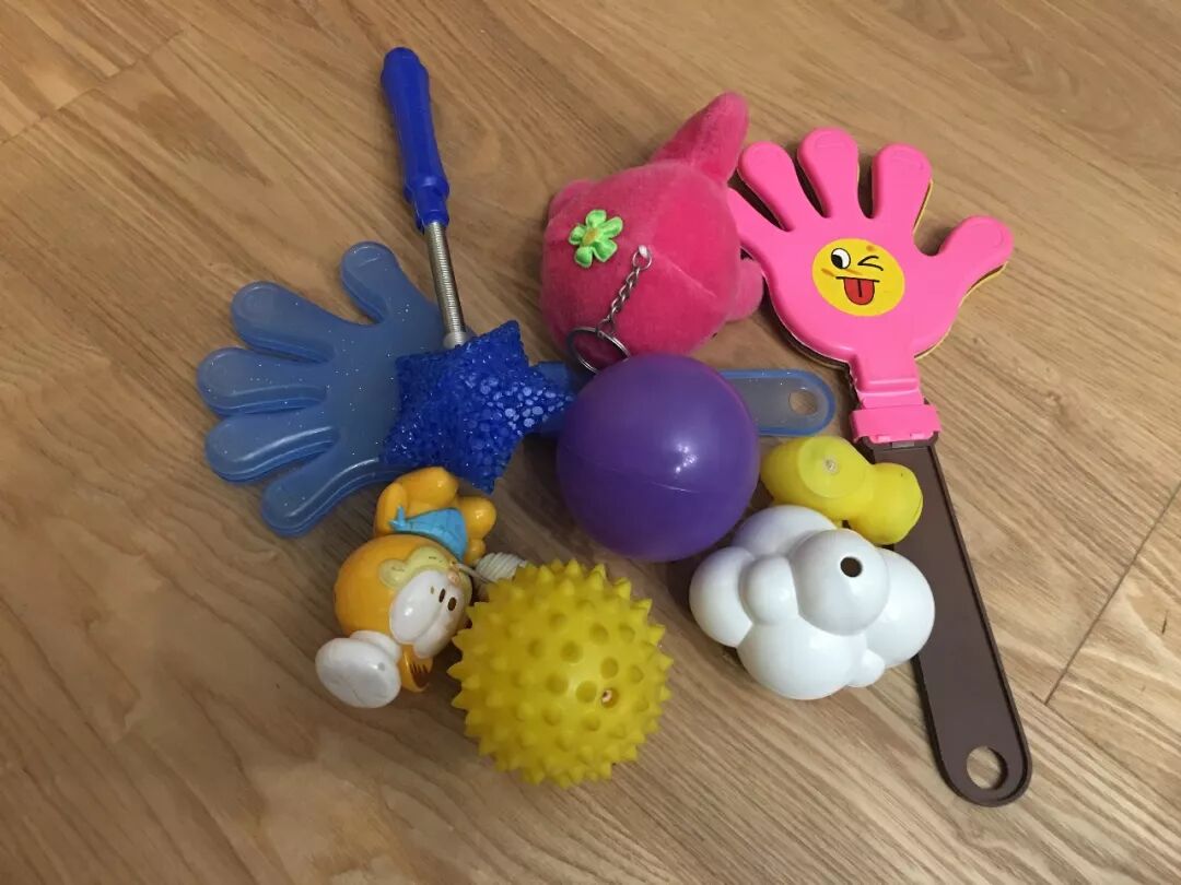 把角角落落的玩具都拿出来,一起摊在地板上,先把里面那些品质比较差的、或者已经坏了修不好的玩具挑出来,扔掉。这些很多都是买其他东西的时候送的,因为是赠品,所以质量也不怎么好,可玩性也一般。