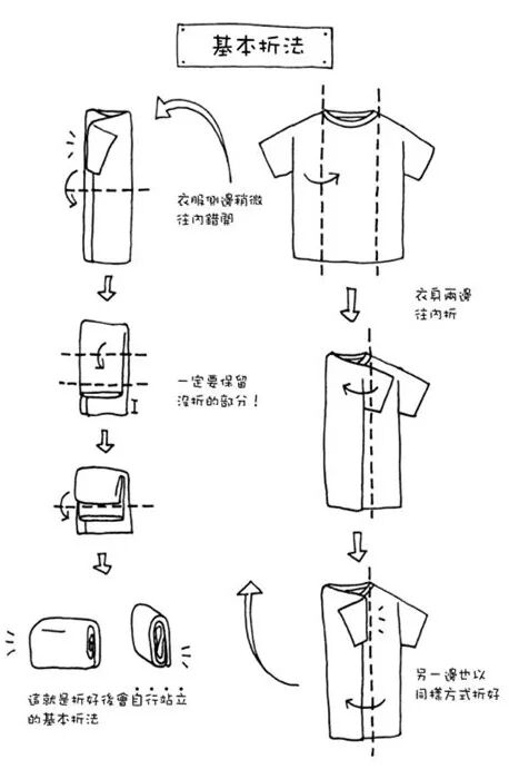所有衣服都想办法折成规则的长条形,然后根据长度折起来就能立着了。