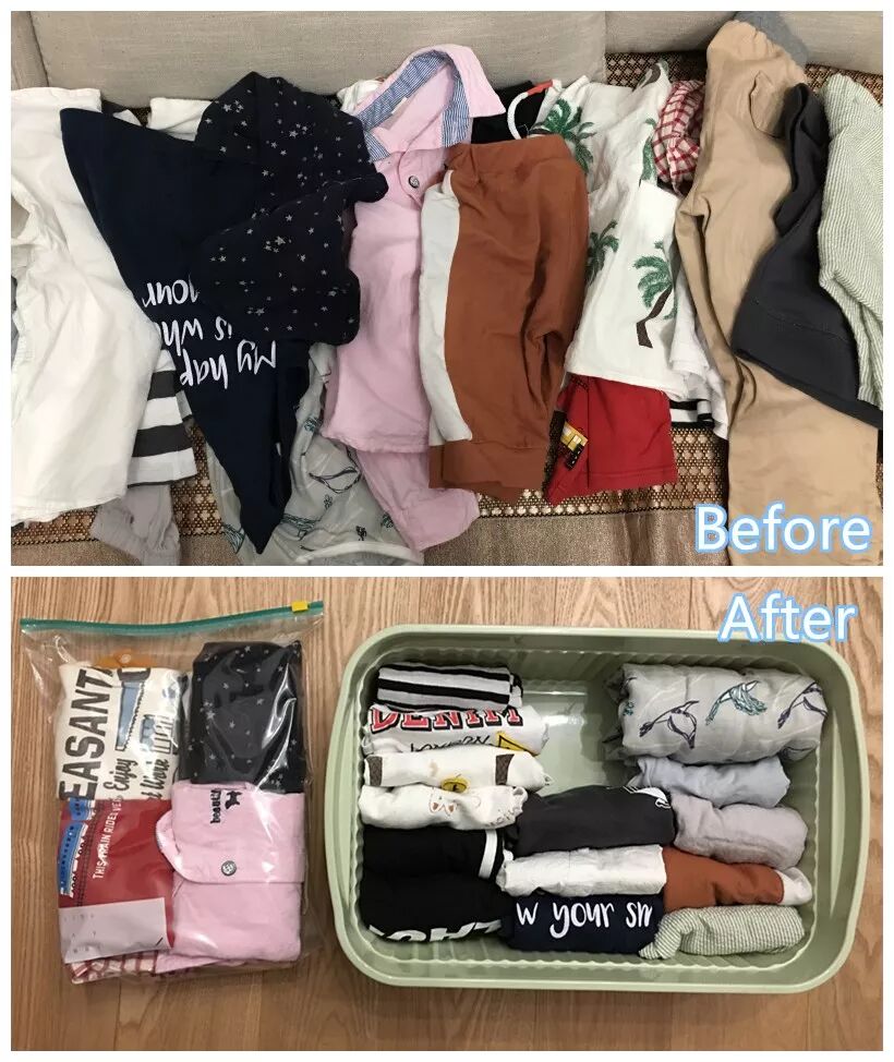 ■ 把已经穿不上,但还挺新的衣服归一类,回头放压缩袋里,留着给二胎或者有这方面需求的朋友;