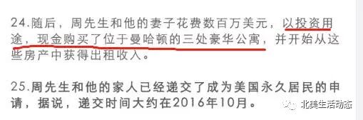 在莫虎诉讼状第24条中显示,周立波和胡洁又花费数百万美元现金在曼哈顿置入三处豪华公寓。莫虎称,周立波胡洁购买该公寓主要是作投资,已经获得出租收入。
