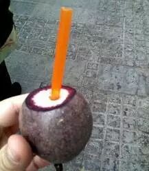 未成熟的百香果是青色的,而成熟的则是紫色和深红色的,而且有很浓郁的香味,那样的百香果就可以摘来吃了。