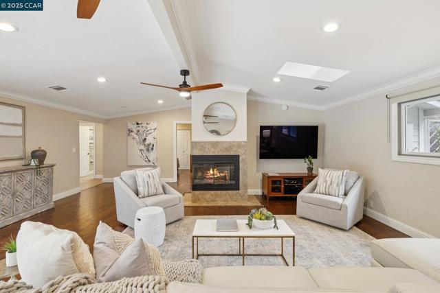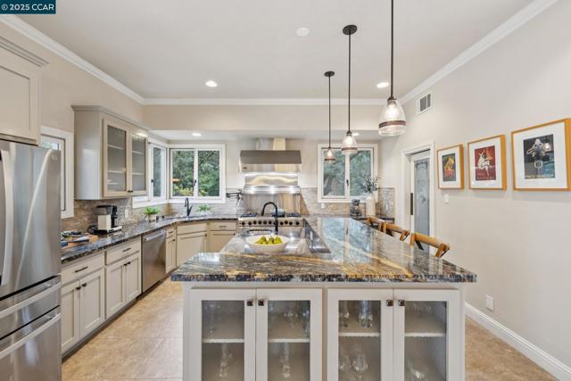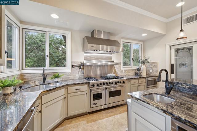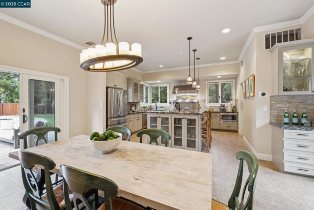 Nestled on a quiet street in Alamo’s desirable Westside, this remodeled custom home blends luxury and comfort. The stainless and granite chef’s kitchen shines with a Viking range, pantry and wine refrigerator—perfect for everyday living or entertaining. Hardwood floors, cathedral ceilings, skylights and Anderson windows add warmth and sophistication throughout 3,100+ square feet of open architecture. The main level offers effortless living with 2 bedrooms and 2 baths, including a level-in entry and a private, spacious patio. The tranquil primary retreat features a glass shower and jetted tub, while a separate wing provides 2 additional bedrooms with a Jack and Jill bath. Outdoors, enjoy a serene oasis with a refinished pool, newer pavers and a lush green landscape, perfect for entertaining or relaxation. A spacious dog run with low-maintenance turf enhances functionality. Peaceful and private, this home is tucked back on a private lane backing to the Iron Horse Trail—just 0.9 miles from Murwood Elementary and near WCI and Las Lomas High, all top-performing schools. Owned solar completes this exceptional offering at an equally exceptional value.