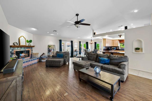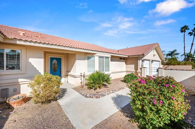 Luxury Living in Bermuda Dunes Country Club - Stunning Custom 4-bedroom, 3-bathroom home featuring an open floorplan with exceptional flow for everyday living and entertaining. The oversized great room boasts a tiled accent fireplace and opens to a spacious kitchen and formal dining area. Three sets of double French doors connect the great room and dining room to the backyard, and pool view creating a seamless indoor/outdoor experience.The split-bedroom layout offers privacy, with one bedroom on one side of the home and three--including the luxurious primary suite--on the other. The primary suite includes a versatile seating area ideal for a home office, and a spa-like bathroom with dual sinks and a walk-in shower.Enjoy resort-style living in the backyard oasis with a saltwater pool and spa. A three-car garage provides ample space for vehicles, storage, and a golf cart. This home is perfect for those seeking comfort, style, and functionality