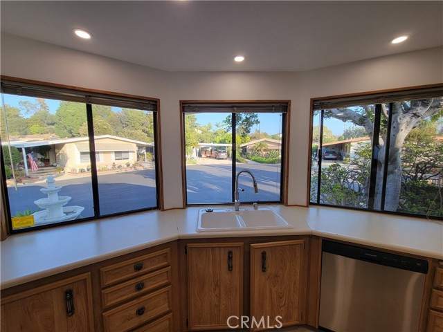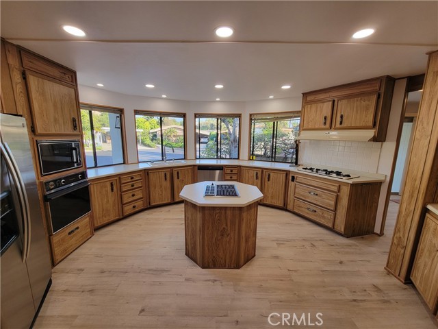 Very nice triple wide home on 6000 sf owned lot (HOA Dues only ($307 a month), house located on a cul-de-sac with great views out kitchen windows. Probably one of the nicest houses and largest houses with the largest kitchen in the entire park. If you bake or cook you will be amazed at how open and large the kitchen is with a Jenn-Air grill island. Very open and secluded and not enclosed by Neighbors on both sides. Has a very large deep carport that can handle 4+ cars and a large storage shed attached. If you're looking for something that is unique and not in a cookie cutter row, this is a very unique and very nice house. Very large laundry room that can also accommodate a 2nd fridge and has a built-in desk office space. All new flooring (vinyl plank, see pics) and many upgrades recently done in the last month. House is Turn Key and ready to move into. Landscape upgrades, painting, tile work are currently ongoing but will show to interested serious parties. Extensive renovations were recently completed 11/25 and the mobile home now has the earthquake retrofit to comply with current loan requirements.