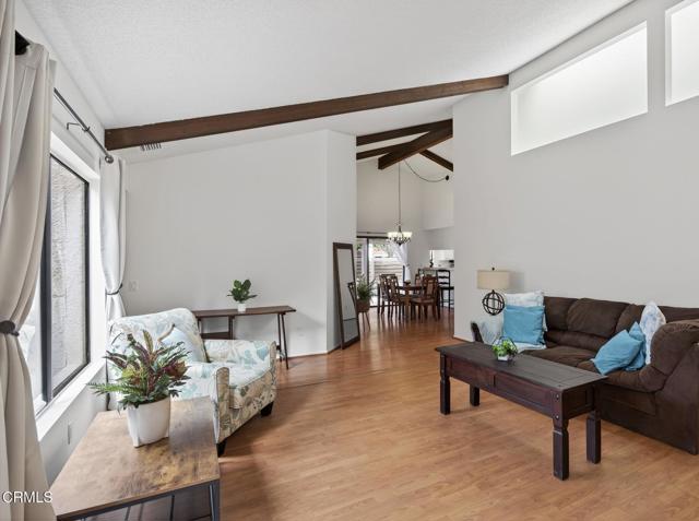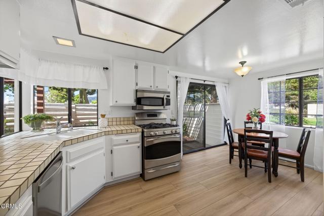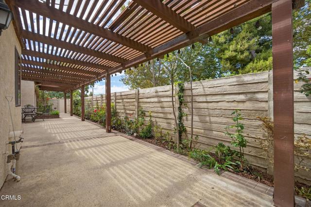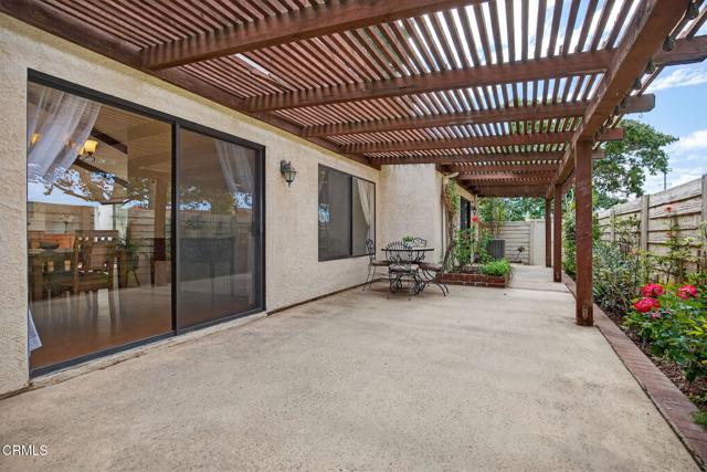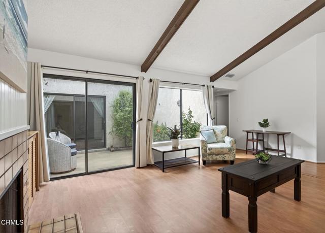 Welcome to Las Casitas, one of Camarillo's most desirable gated communities! This beautiful single-story offers the community's largest floor plan. 1,722 Sqft home with 2 bedrooms, 2 bathrooms, a den with wet bar (that can easily become a 3rd bedroom or an office), a bright atrium, and a pergola-style covered side patio for extra outdoor living.A bright kitchen features tile countertops, a corner view window with mountain and patio views, new plank flooring, stainless steel appliances, a new fridge, pull-out spice rack, enclosed laundry with washer/dryer, and a sliding door to the patio. Just off the kitchen, the dining area showcases vaulted ceilings that carry into the living room, where a cozy fireplace and a slider to the atrium create a warm, open space filled with natural light.The guest bedroom includes new carpet and a spacious closet, paired with a full bath featuring a tub/shower combo. In the primary suite, enjoy new carpet, patio access, a walk-in closet, soaking tub, separate shower, and double-sink vanity. The den provides flexibility as an office or entertaining space with its own slider to the atrium.Freshly painted throughout, with central AC, lush landscaping, and a sprinkler system, this home is move-in ready. The expansive covered patio which is accessible from the kitchen, dining, and primary offers plenty of room for entertaining or relaxing, with two gates for direct access to community amenities and the central park. A 2-car garage adds convenience with loft storage, power, and a pull-down ladder.Las Casitas is a gated community of 57 Mediterranean-style homes offering resort-style amenities: pool and spa, pickleball, basketball court, shuffleboard, putting green, horseshoe pit, RV parking, and a shaded central park with walking paths. HOA services include exterior maintenance, roof, stucco, and front yard care for easy living.All of this in a prime Camarillo location, just minutes to schools, the library, shopping, and the 101 Freeway. Don't miss the opportunity to own one of the best homes in Las Casitas!*Bedroom and den pictures are virtually staged*