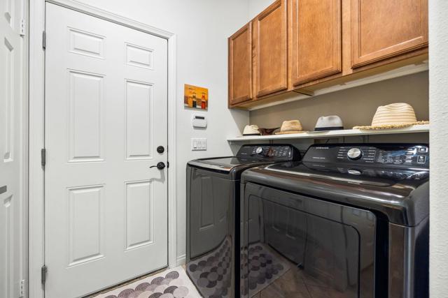 Furnished Santa Fe Gem with Owned Solar & Private Pool/Spa! Located just across the street from the multi-million dollar Tradition neighborhood, this beautifully maintained Santa Fe-style home blends charm, comfort, and modern efficiency. Step inside to discover a private courtyard oasis featuring stunning mountain views and a fully refinished quartz plaster pool and spa, complete with a newer heater, pump, filter, autofill system, and remote automation--perfect for year-round relaxation. Recent upgrades include a new 4-ton AC unit (installed 3 years ago) with an Ecobee thermostat and relocated compressor for quieter operation. Additional improvements feature fresh interior paint (2022), newer water heater (2022), and updated appliances including refrigerator, dishwasher, washer, and dryer. With no HOA fees, connection to sewer, and the savings of IID electric rates, this property offers both convenience and value. Just minutes from Bear Creek hiking trails and the shops and restaurants of Old Town La Quinta, this furnished home is ideal as a full-time residence, vacation getaway, or investment property. Please inquire for the full list of upgrades--this one checks all the boxes!