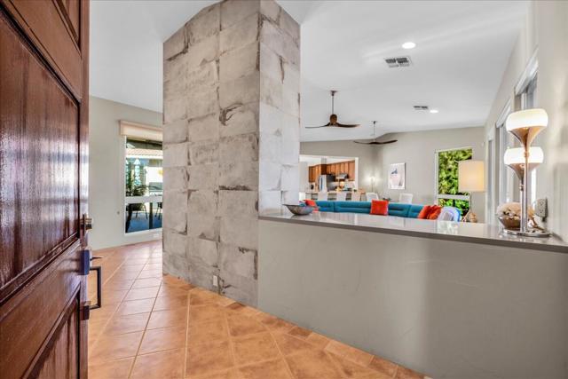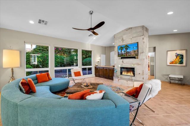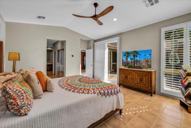 Welcome to your next chapter in the Ventanas at Rancho La Quinta Country Club. This turnkey furnished Malaga home sits on a private, oversized cul-de-sac lot. The experience begins in the tranquil courtyard, leading to an interior defined by abundant natural light and seamless tile flooring. This is a home built for celebration; imagine hosting family and friends from the gourmet kitchen, equipped with a Viking range and hood, dry bar, and wine chiller. The true heart lies outside, where the oversized yard offers an unforgettable retreat. Picture yourself relaxing in the freeform Pebble Tec pool and spa, watching spectacular desert sunsets over the Santa Rosa Mountains. The built-in barbecue and shaded patio are ideal for al fresco dining. The primary suite is a sanctuary with a soaking tub and dual vanities. Featuring three bedrooms, three bathrooms, and a three-car garage with epoxy floors and custom cabinetry, every detail is accounted for. This property is a gateway to the quintessential Rancho La Quinta lifestyle, all presented with contemporary furnishings and the potential for future expansion on one of the largest lots. Come, write your story here.