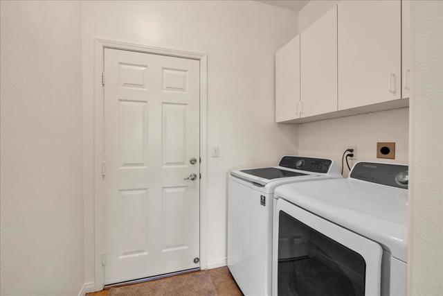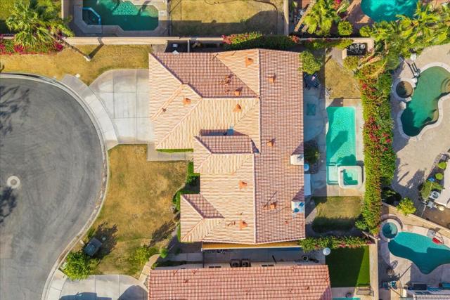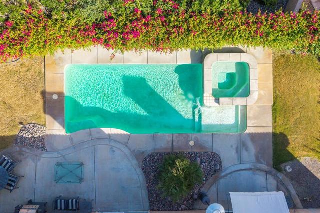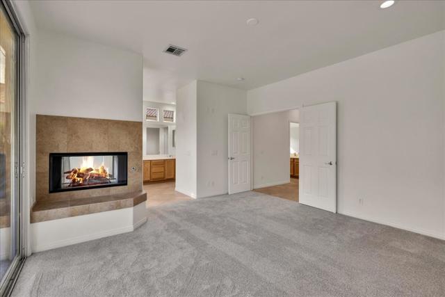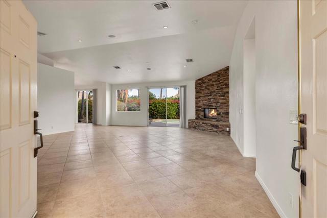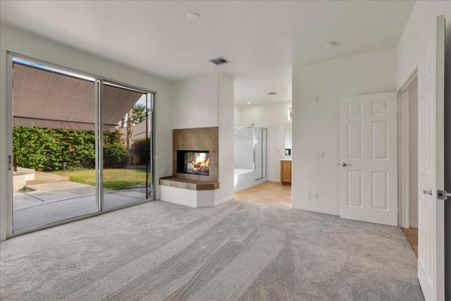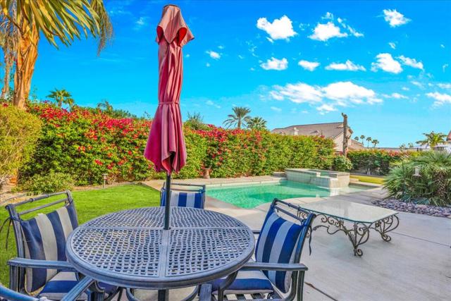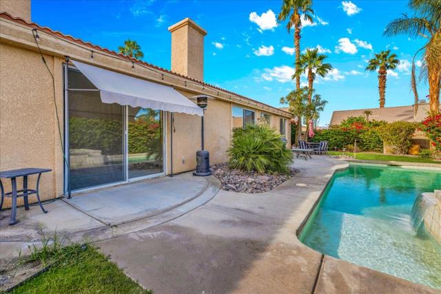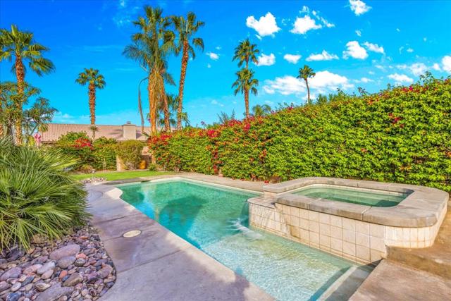 Welcome to the Desert Flower Community, discover this beautifully maintained pool home nestled within a small gated community with a very limited number of homes, where comfort, privacy, and desert charm come together. This is a rare opportunity to own in one of La Quinta's most desirable and private neighborhoods, located within the highly regarded Desert Sands Unified School District.This inviting 3-bedroom, 2-bath residence offers approximately 2,100 sq. ft. of open living space and sits peacefully on a quiet cul-de-sac.Step inside to discover a bright, freshly painted interior with new carpet in all bedrooms and neutral tile flooring throughout the main living areas. The spacious great room features soaring ceilings, a striking stacked-stone fireplace, and large sliding doors that open to your private backyard retreat--perfect for seamless indoor-outdoor living.The kitchen offers ample cabinetry, a pantry, and a convenient breakfast bar that flows effortlessly into the dining and living areas.The primary suite is a true desert sanctuary, complete with its own fireplace, direct patio access, and a luxurious ensuite bath featuring a soaking tub, walk-in shower, dual vanities, and generous closet space.Step outside to your private oasis--a sparkling pool and elevated spa surrounded by lush landscaping and tall privacy hedges, ideal for relaxing or entertaining year-round.Additional highlights include a spacious 2-car garage with extra space for golf cart, indoor laundry room, and low-maintenance desert landscaping. Conveniently located near top-rated schools, shopping, and world-class golf and dining, this home perfectly blends resort-style living with everyday comfort.