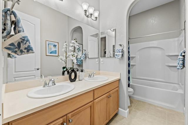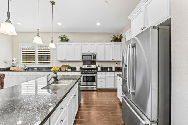$41,000 Price Improvement! Welcome to a rare opportunity for serene waterfront living in the private, gated community of Oakwood Shores. The community includes a clubhouse, playground, pool, landscaped lakefront areas. This beautifully maintained single-story home offers 3 bedrooms, 2.5 bathrooms, and sweeping lake views. The thoughtfully landscaped backyard and spacious side yard provide endless versatility whether it's quiet mornings, joyful gatherings, or simply soaking in the natural beauty right outside your door. Step inside to a warm and inviting kitchen, featuring premium Bosch stainless steel appliances, an oversized granite island, and extra-long base custom cabinets that maximize storage and functionality. Generous space for cookware, pantry items, and everyday essentials, the kitchen flows seamlessly into the dining and family areas, creating the perfect setting for both cozy dinners & lively celebrations. Every detail of this home has been carefully considered from elegant tile work and ambient lighting to built-in shelving and plantation shutters throughout. Comfort, style, and functionality come together in a move-in-ready home designed for everyday living and special moments alike. Imagine the possibilities here at Oakwood Shores.
