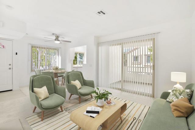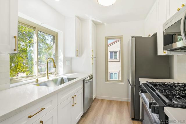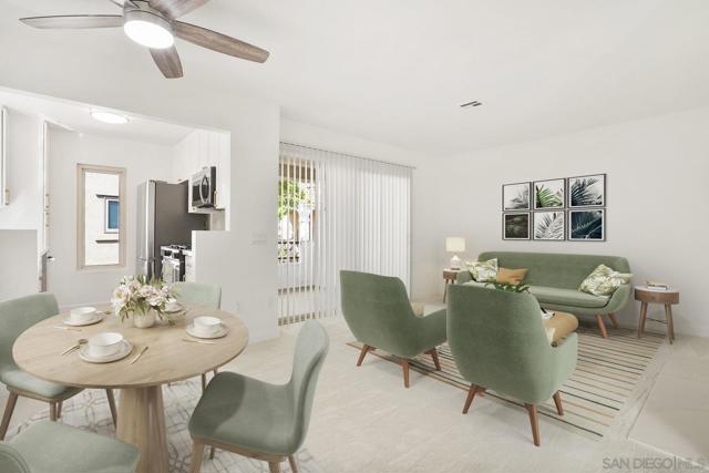 Welcome to this beautifully updated 1-bedroom, 1-bathroom condo with 598 sq. ft. of modern living space. Every detail has been thoughtfully upgraded, including a brand-new kitchen with sleek cabinetry, quartz countertops, designer tile backsplash, and stainless steel appliances. The open living area features large-format tile at the entryway, a stunning new fireplace surround, and dual-paned windows that fill the home with natural light. The spacious bedroom connects to a fully renovated bathroom with a new vanity, tile, tub, and fixtures. Additional highlights include in-unit washer/dryer, newer HVAC system, private balcony, ample storage, and a dedicated covered parking space. Situated on the top floor for added privacy, this home combines comfort and convenience in one of San Diego’s most desirable locations. Enjoy being minutes away from endless shopping and dining in Mira Mesa, close to major freeways, UCSD, and the tech hub of San Diego. Whether you’re a first-time buyer, downsizing, or looking for an investment, this turnkey condo offers the perfect blend of style and location.