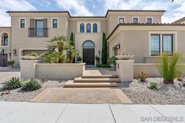 Welcome to Your Dream Home in Palomar at Pacific Highlands Ranch. Step into luxury living in the gated community of Palomar, where elegance meets comfort in this stunning Toll Brothers home. This expansive residence features 5 bedrooms, 5.5 bathrooms, and over 6,000 square feet of thoughtfully designed living space. Upon entry, you’re greeted by a double staircase, soaring ceilings, and an open-concept floor plan that seamlessly connects the indoors with the serene outdoor setting. Your gaze is immediately drawn to the Zen-inspired backyard—a peaceful sanctuary featuring lush landscaping, seamless indoor-outdoor flow, and a tranquil bubbling water feature that sets the tone for relaxation. The chef’s kitchen is a showstopper, complete with top-of-the-line Sub-Zero and Wolf appliances, a large island, and elegant finishes—perfect for both everyday living and entertaining. The adjacent family room, accented with exposed wood beams and a cozy fireplace, creates a warm and inviting atmosphere. All bathrooms have marble countertops, and sound systems are built in on the patio and the second-floor loft. Downstairs includes a private ensuite bedroom, ideal for guests or multi-generational living. Upstairs, you’ll find a spacious loft with custom high-end cabinetry, perfect for a second living area, game room, or home office. The primary retreat is a true sanctuary—exceptionally spacious with room for an office, gym, or reading nook. The luxurious primary bath features a floating soaking tub, a massive walk-in marble shower, and premium upgrades throughout. Three additional ensuite bedrooms complete the upstairs. Additional highlights include the 3-car garage, water filtering and softening system, ADT security system, fully paid solar panels, and a backup battery system for energy efficiency and peace of mind. Access to 2 clubs with a pool, fitness center, and clubhouse is included. This home truly has it all—sophistication, space, style, and the ultimate California lifestyle. Enjoy the ease of walking distance to shopping, with top-rated restaurants, major freeways, and stunning beaches just minutes away. Located within the highly acclaimed Solana Beach School District and the San Dieguito Union High School District, this home offers access to some of the best schools in the region.
